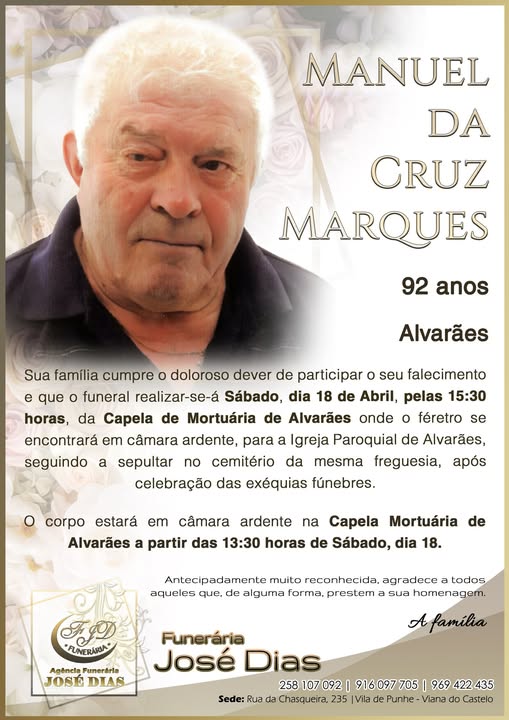 A Agência Funerária José Dias, localizada na Rua da Chasqueira, 235, Vila de Punhe, Viana do Castelo, Portugal, é uma empresa com mais de 75 anos de experiência, reconhecida pelo seu rigor, profissionalismo e dignidade nos serviços prestados. Conta com uma frota de veículos funerários e todos os materiais necessários para atender às necessidades dos clientes.